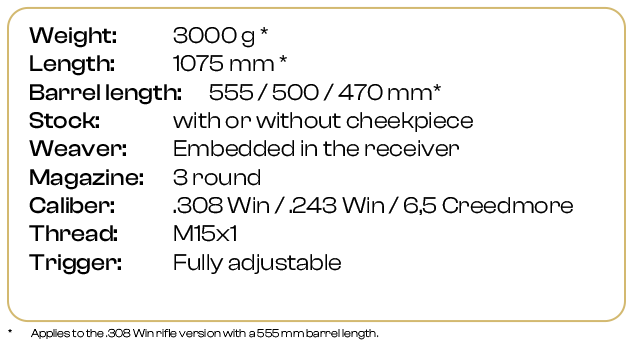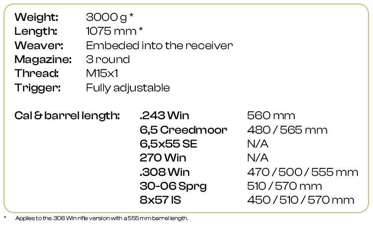 Discover a new dimension of hunting with the G24 rifle, which brings reliability and flexibility for every hunter. This repeating rifle is equipped with a 3-round magazine and offers a choice of three barrel lengths, allowing you to customize the weapon to your needs.