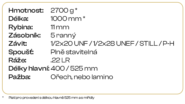 Představujeme novou malorážku JK B24, která kombinuje přesnost, všestrannost a českou kvalitu. S přímotažným závěrem a 5 ranovým zásobníkem, je tato zbraň ideální volbou pro každého střelce. Nabízíme dvě délky hlavně s možností výběru varianty s mířidly nebo bez nich a každý model je vybaven závitem pro tlumič hluku výstřelu.