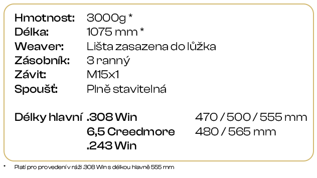 Objevte novou dimenzi lovu s kulovnicí G24, která přináší spolehlivost a flexibilitu pro každého lovce. Tato opakovací kulovnice je vybavena 3 ranovým zásobníkem a nabízí výběr délky hlavně, což vám umožní přizpůsobit zbraň vašim potřebám. Weaver lišta zasazena do lůžka usnadňuje montáž optiky, zatímco plně stavitelná spoušť zajišťuje maximální kontrolu nad každým výstřelem. S revolučním systémem jednoduché výměny hlavní a závitem pro tlumič na každé hlavni je G24 připravena na jakoukoli výzvu. Zažijte výkon a preciznost s kulovnicí G24!